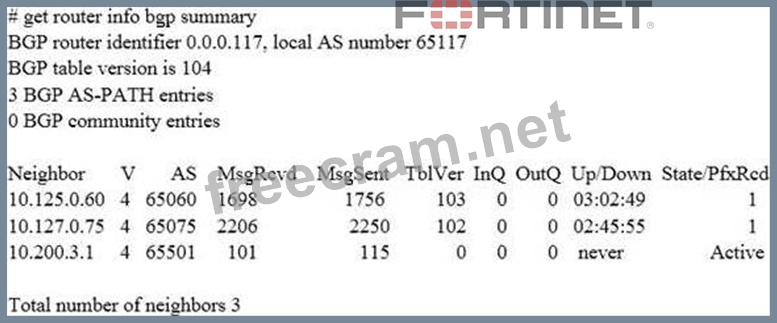 Question 90: Examine the output of the 'get router info bgp summary' comm...