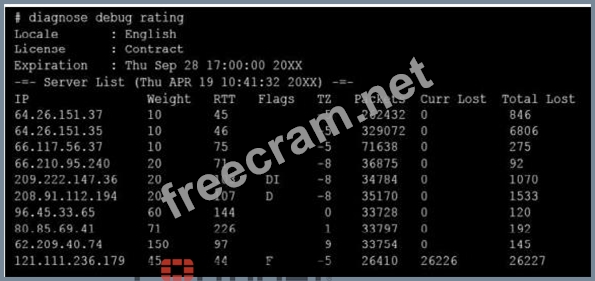 Question 9: Examine the output of the 'diagnose debug rating' command sh...