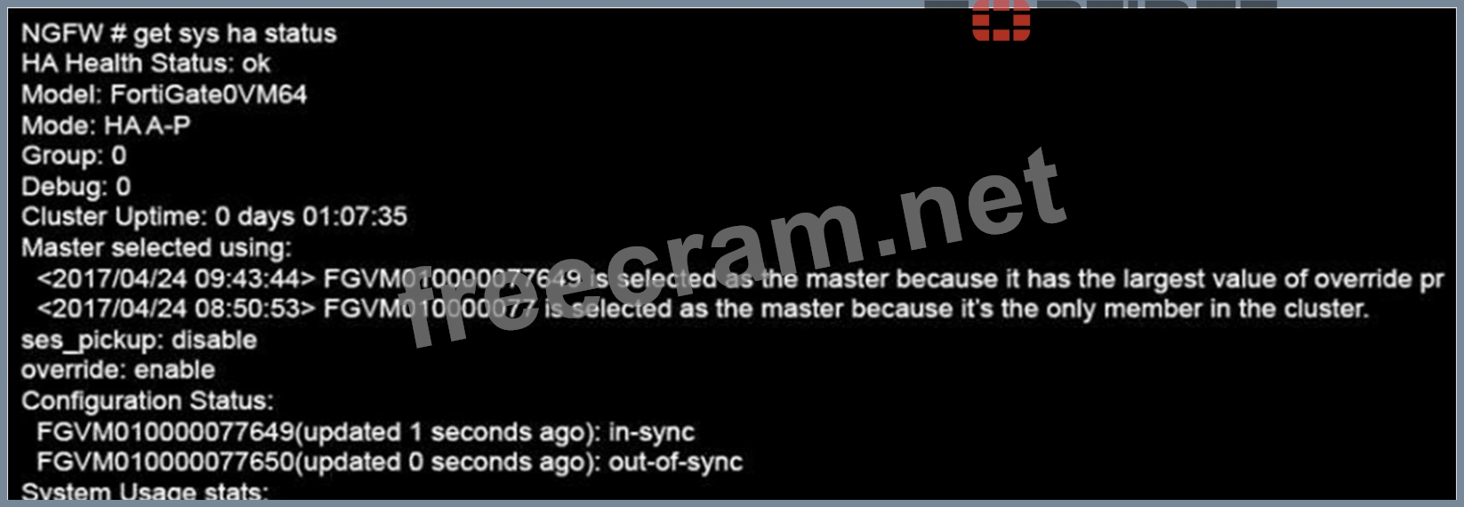 Question 15: View the exhibit, which contains the output of get sys ha st...