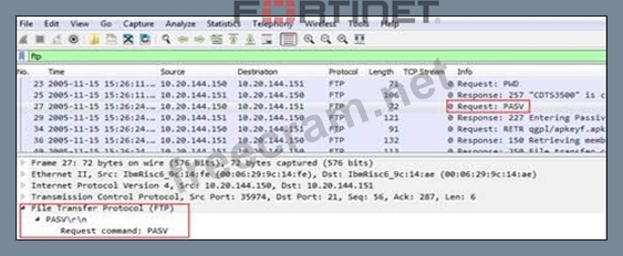 View the following exhibit, which contains the sniffer output for a passive mode FTP request.