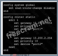 Exhibit 1. Exhibit 2. Refer to the exhibits, which show the configuration on FortiGate and partial internet session information from a user on the internal network. An administrator would like to lest session failover between the two service provider connections. Which two changes must the administrator make to force this existing session to immediately start using the other interface? (Choose two.)