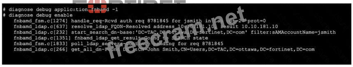 Refer to the exhibit, which shows a truncated output of a real-time LDAP debug.