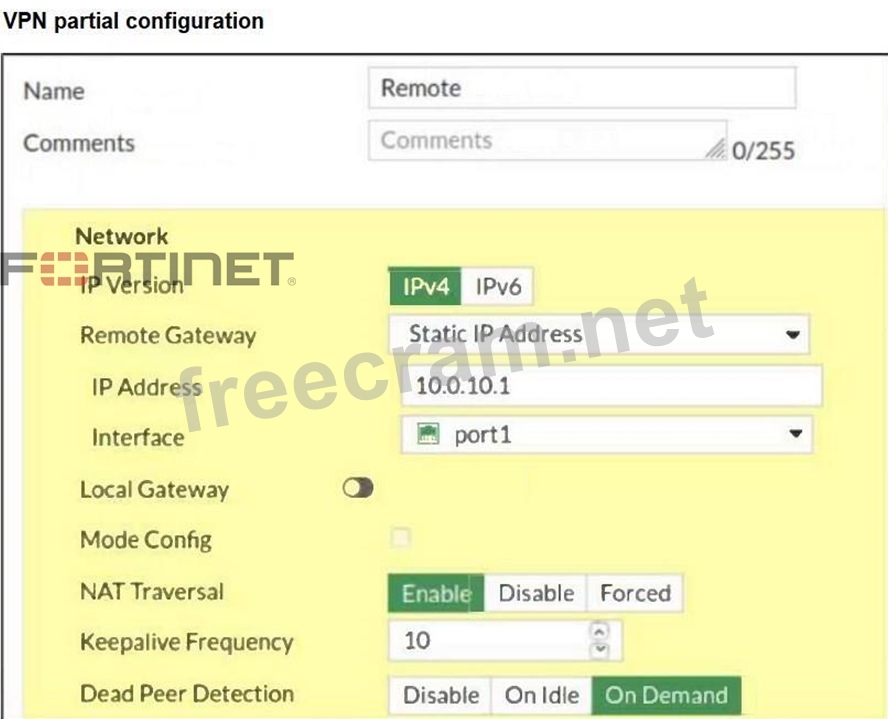 Refer to the exhibit, which contains a screenshot of some phase 1 settings.