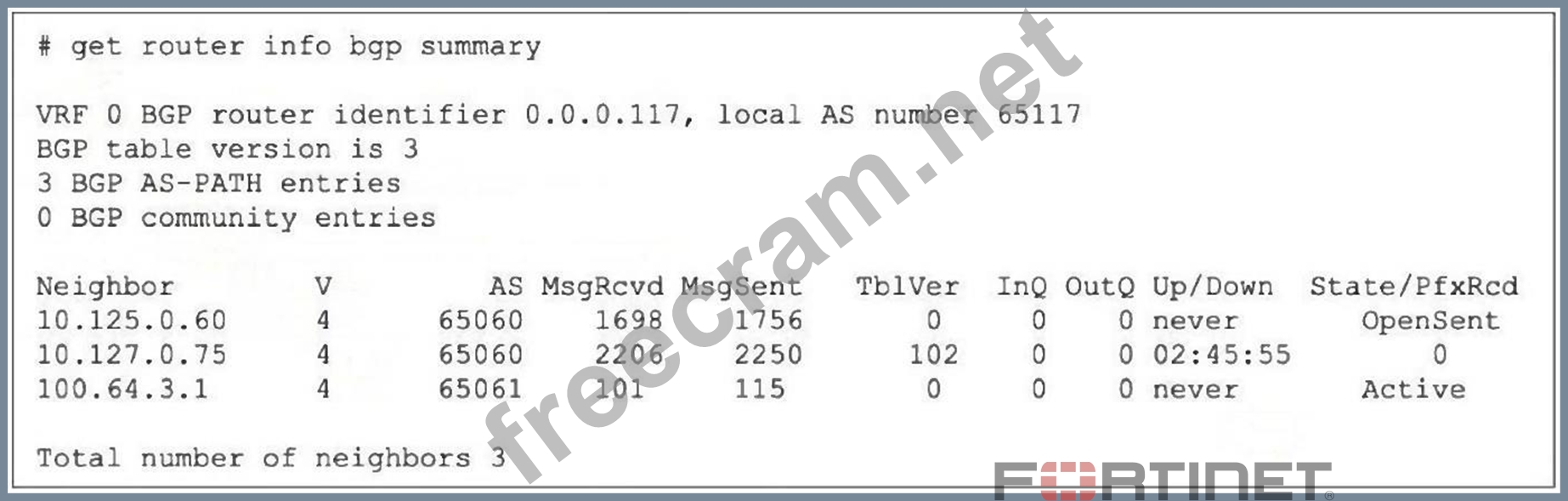 What is the reason that the local FortiGate is not receiving any prefixes from its neighbors?