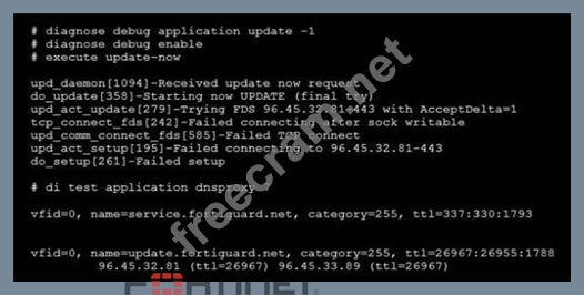 Question 28: When investigating FortiGuard connectivity issues, which act...