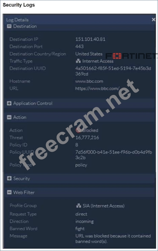 To allow access to the URL blocked due to a banned word ("fight" in this case), you need to change the content filter configuration in FortiSASE. The content filter checks the content within URLs and blocks access based on specific keywords or phrases. Since the block was triggered by the word "fight," modifying the content filter settings to either remove this word from the banned list or adjust the filtering criteria would allow access to the URL.