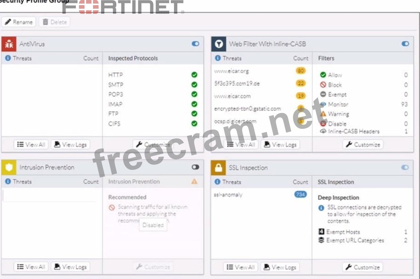 Refer to the exhibits. A FortiSASE administrator has configured an antivirus profile in the security profile group and applied it to the internet access policy. Remote users are still able to download the eicar.com-zip file from https://eicar.org. Traffic logs show traffic is allowed by the policy. Which configuration on FortiSASE is allowing users to perform the download?