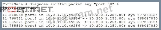 View the exhibit: The client cannot connect to the HTTP web server. The administrator ran the FortiGate built-in sniffer and got the following output: What should be done next to troubleshoot the problem?