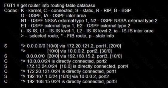 Question 14: FortiGate is operating in NAT mode and is configured with tw...