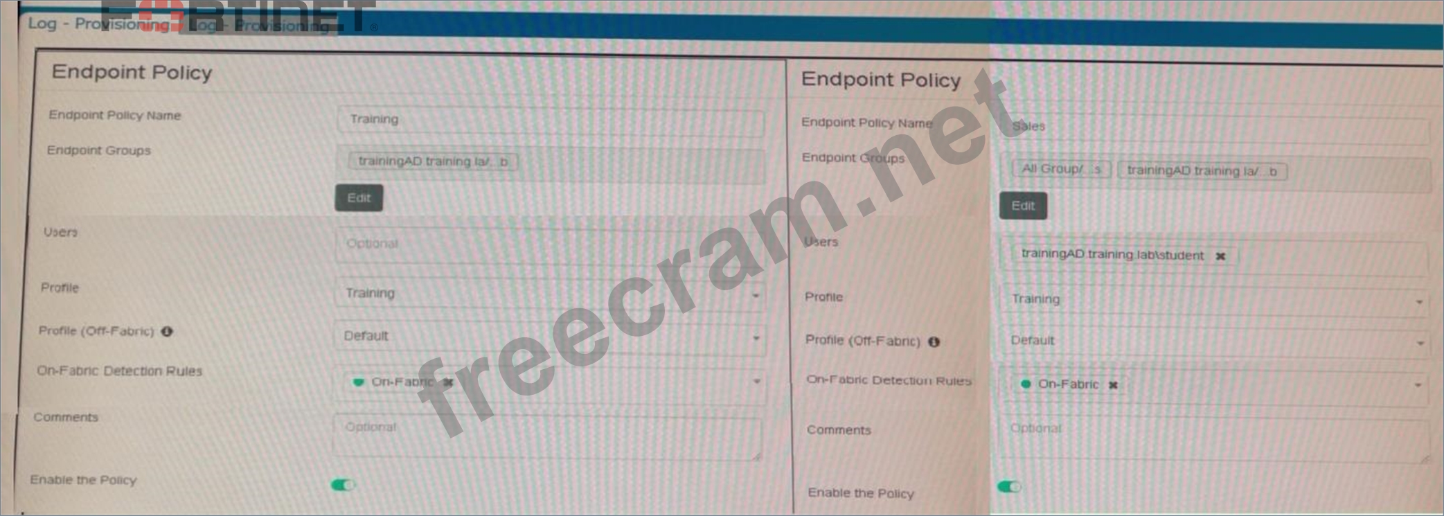 Refer to the exhibits. Which shows the configuration of endpoint policies. Based on the configuration, what will happen when someone logs in with the user account student on an endpoint in the trainingAD domain?
