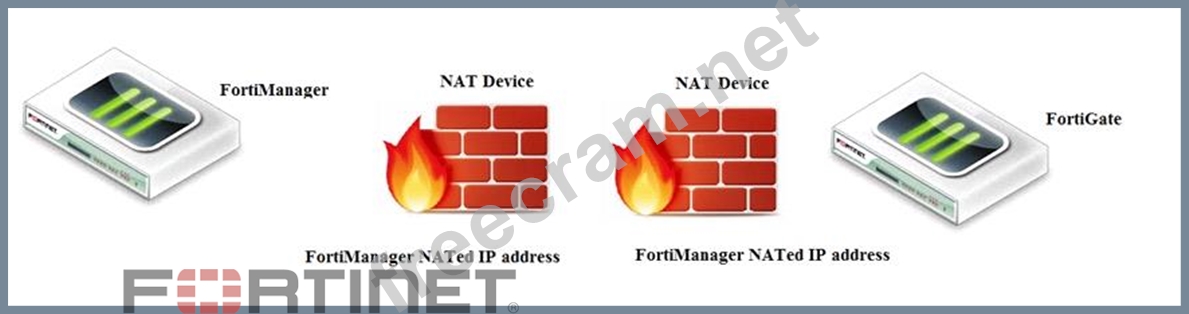 Fortimanager can discover FortiGate through a NATed FortiGate IP address. If a FortiManager NATed IP address is configured on FortiGate, then FortiGate can announce itself to FortiManager. FortiManager will not attempt to re-establish the FGFM tunnel to the FortiGate NATed IP address, if the FGFM tunnel is interrupted. Just like it was in the NATed FortiManager scenario, the FortiManager NATed IP address in this scenario is not configured under FortiGate central management configuration.