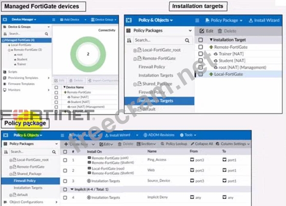 Refer to the exhibit. Given the configuration shown in the exhibit, what can you conclude from the installation targets m the Install On column? (Choose two)