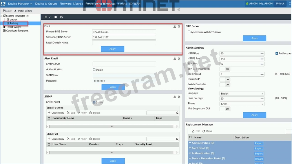 Question 3: Which configuration setting for FortiGate is part of an ADOM...