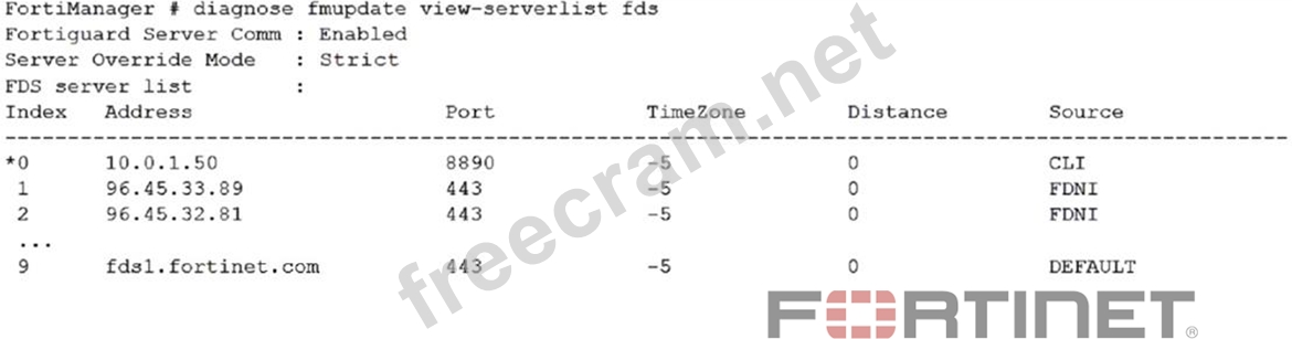 FortiManager tries to obtain updates from the servers configured in the Use Override Server Address for FortiGate/FortiMail section. Depending on the Server Override Mode configuration, you can restrict FortiManager to receiving updates from the configured override servers list, or allowing fallback to other public FDS servers, if FortiManager is not able to communicate and receive updates from the configured server list. In the example shown on this slide, two override server addresses are configured. When Server Override Mode is set to Strict, FortiManager gets updates only from these two servers. There is no fallback to other public servers, if these two configured servers are not available. If you set Server Override Mode to Loose, FortiManager first tries to get updates from the configured server list; if they are unavailable, FortiManager falls back to other public FDS servers to get updates. Reference [Page 357] - https://ebin.pub/fortinet-fortimanager-study-guide-for-fortimanager-72.html
