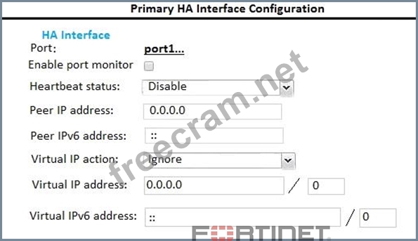 Examine the FortiMail active-passive cluster shown in the exhibit; then answer the question below. Which of the following parameters are recommended for the Primary FortiMail's HA interface configuration? (Choose three.)