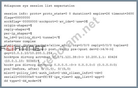 Examine the output of the 'diagnose sys session list expectation' command shown in the exhibit; than answer the question below. Which statement is true regarding the session in the exhibit?
