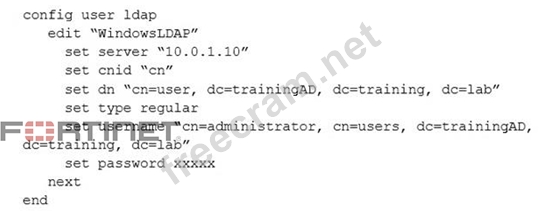 Question 25: A FortiGate device has the following LDAP configuration: (Ex...