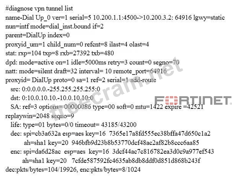 Question 3: Examine the output from the 'diagnose vpn tunnel list' comma...