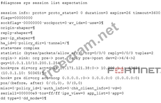 Question 37: Examine the output of the 'diagnose sys session list expecta...