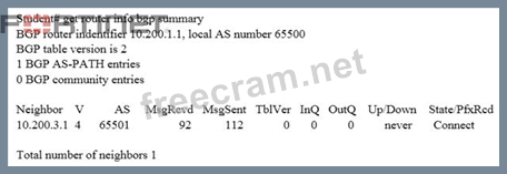 Question 31: Examine the output of the 'get router info bgp summary' comm...