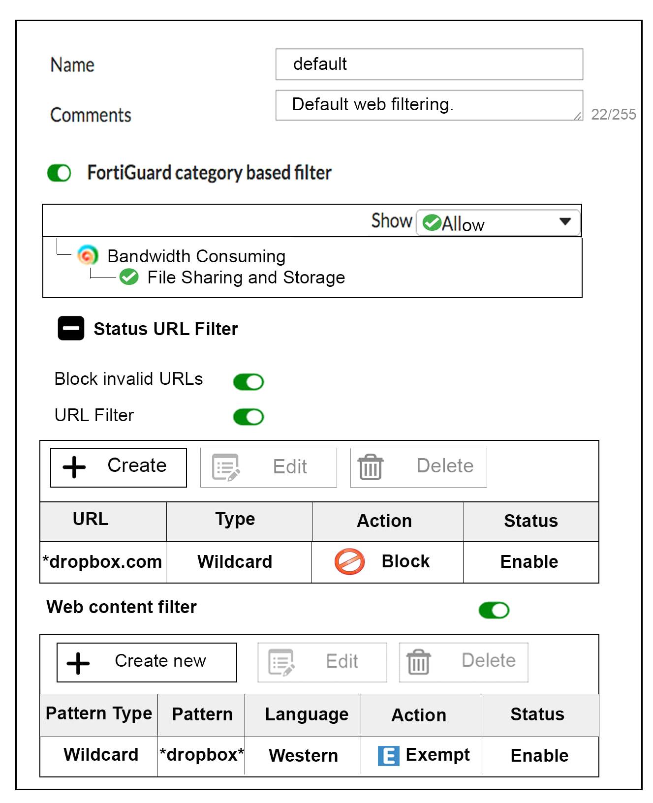 View the exhibit, which contains a partial web filter profile configuration, and then answer the question below.