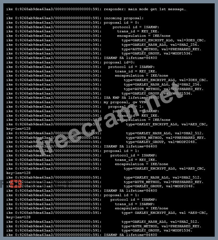 View the exhibit, which contains the partial output of an IKE real time debug, and then answer the question below.