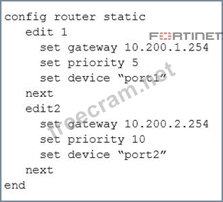 Question 28: A FortiGate has two default routes: (Exhibit) All Internet t...