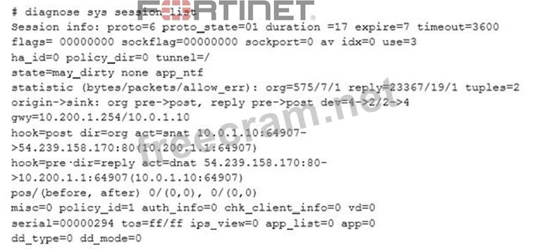 Question 34: What does the dirty flag mean in aFortiGate session?...