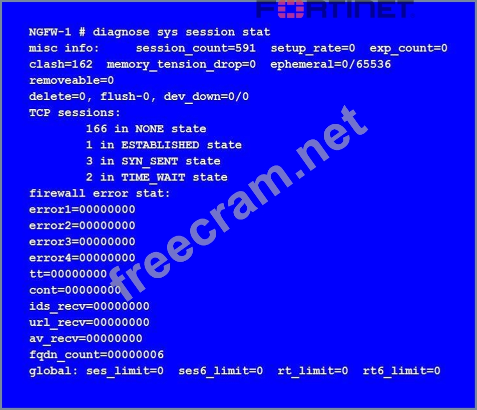 View theexhibit, which contains the output of diagnose sys session stat, and then answer the question below.