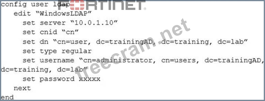 Question 64: A FortiGate device has the following LDAP configuration: (Ex...