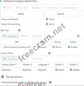 Refer to the exhibit, which shows a partial web filter profile conjuration What can you cone udo from this configuration about access towww.facebook, com, which is categorized as Social Networking?