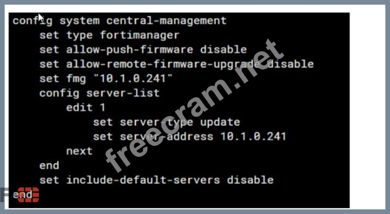 Question 14: Refer to the exhibit, which shows config system central-mana...