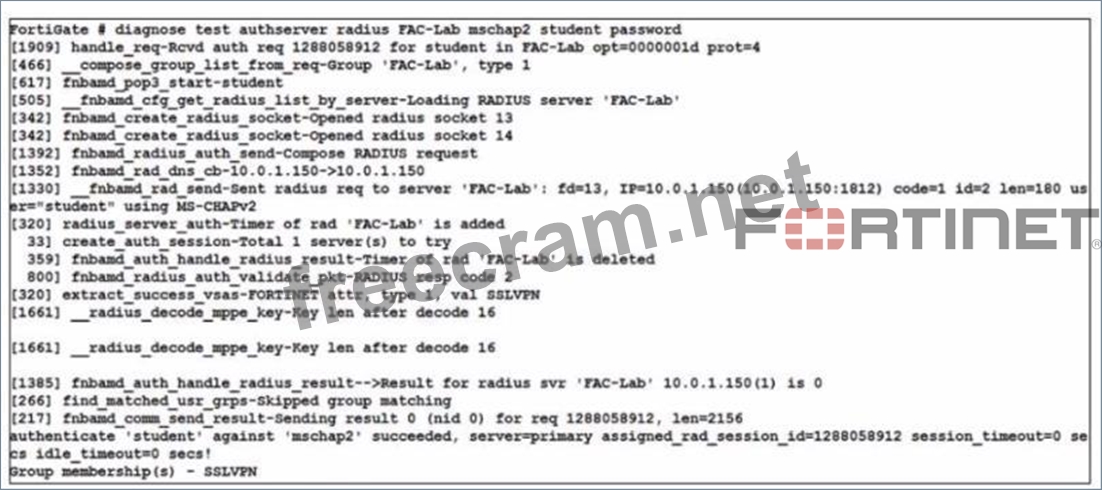 Which two statements about the RADIUS debug output are true'' (Choose two)