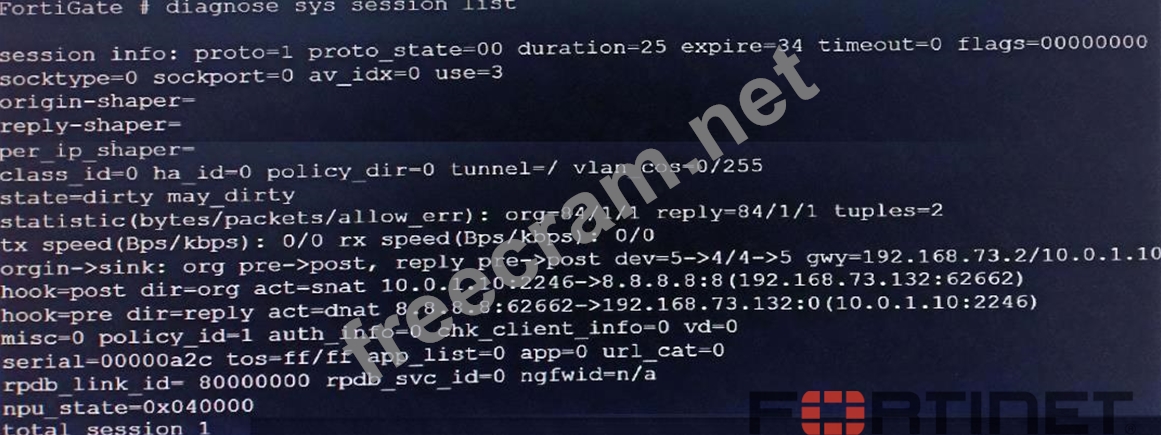 Based on the exhibit, which statement about FortiGate re-evaluating traffic is true?