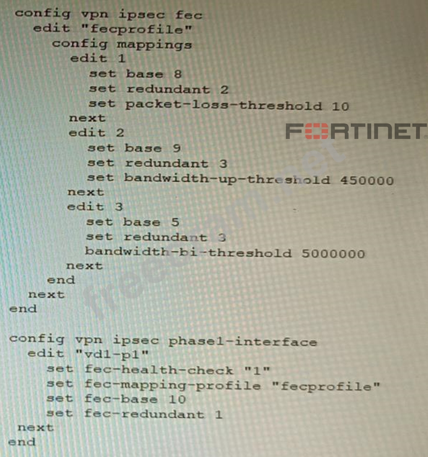 Review the VPN configuration shown in the exhibit. What is the Forward Error Correction behavior if the SD-WAN network traffic download is 500 Mbps and has 8% of packet loss in the environment?