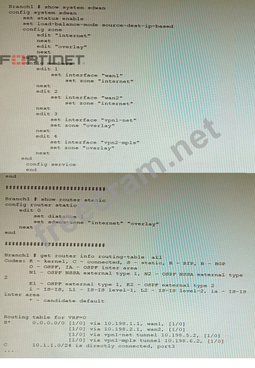 Refer to the exhibit, which shows a Branch1 configuration and routing table. In the SD-WAN implicit rule, you do not want the traffic load balance for the overlay interface when all members are available. In this scenario, which configuration change will meet this requirement?