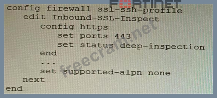 Question 10: Refer to the CLI configuration of an SSL inspection profile ...