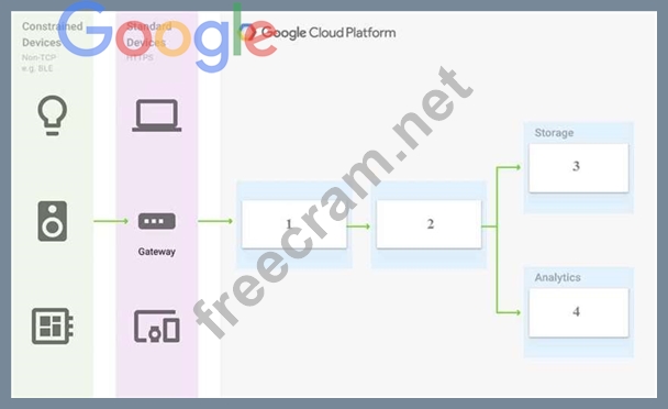 You are building a pipeline to process time-series data. Which Google Cloud Platform services should you put in boxes 1,2,3, and 4?