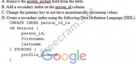 Your customer has implemented a solution that uses Cloud Spanner and notices some read latency-related performance issues on one table. This table is accessed only by their users using a primary key. The table schema is shown below. You want to resolve the issue. What should you do?