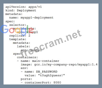 You need to refactor this configuration so that the database password is not stored in plain text. You want to follow Google-recommended practices. What should you do?