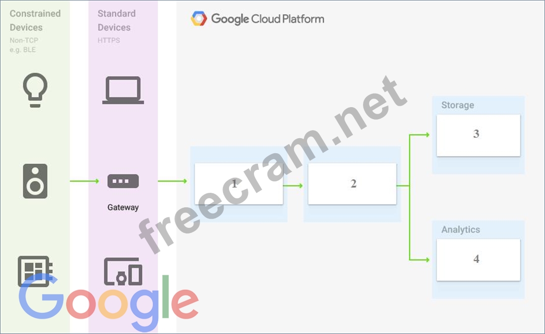 a. Which Google Cloud Platform services should you put in boxes 1,2,3, and 4?