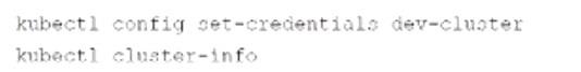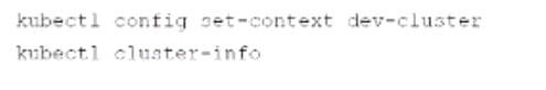 When you run the Kubect1 get nodes command, you only see the nodes from prod-cluster Which commands should you run to check the node status for dev-cluster?