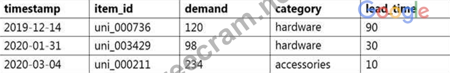 A data scientist wants to use Amazon Forecast to build a forecasting model for inventory demand for a retail company. The company has provided a dataset of historic inventory demand for its products as a .csv file stored in an Amazon S3 bucket. The table below shows a sample of the dataset.