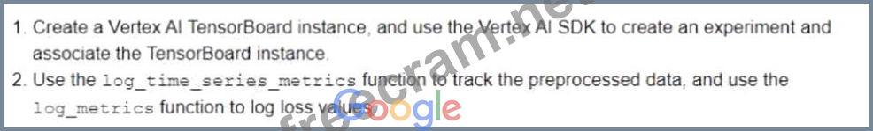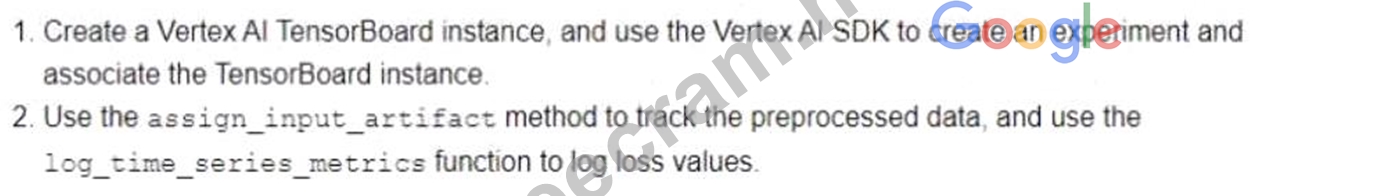 You can also use the Vertex AI TensorBoard instance and the Vertex AI SDK to create an experiment and associate the TensorBoard instance. TensorBoard is a tool that allows you to visualize and monitor the metrics and artifacts of your ML experiments. You can use the Vertex AI SDK to create an experiment object, which is a logical grouping of runs that share a common objective. You can also use the Vertex AI SDK to associate the experiment object with a TensorBoard instance, which is a managed service that hosts a TensorBoard web app. By using the Vertex AI TensorBoard instance and the Vertex AI SDK, you can easily set up and manage your experiments, and access the TensorBoard web app from the Vertex AI console. You can also use the log_time_series_metrics function and the log_metrics function to log data and track artifacts from each run.