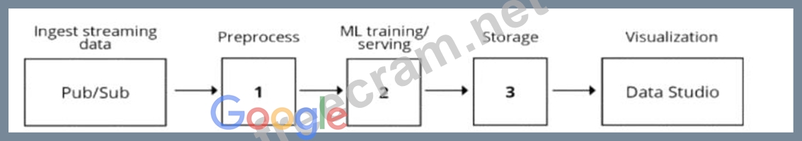 You are building an ML model to detect anomalies in real-time sensor data. You will use Pub/Sub to handle incoming requests. You want to store the results for analytics and visualization. How should you configure the pipeline?