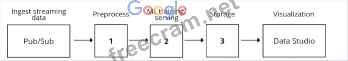 You are building an ML model to detect anomalies in real-time sensor data. You will use Pub/Sub to handle incoming requests. You want to store the results for analytics and visualization. How should you configure the pipeline?