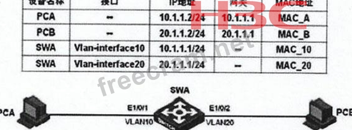 In the network shown in the figure, the corresponding configuration is completed on the switch SWA, and the switch SWA and each PC have learned the corresponding ARP table entry. When PCA accesses PCB, it sends an ICMP request message. Which of the following is the destination IP address of the message?