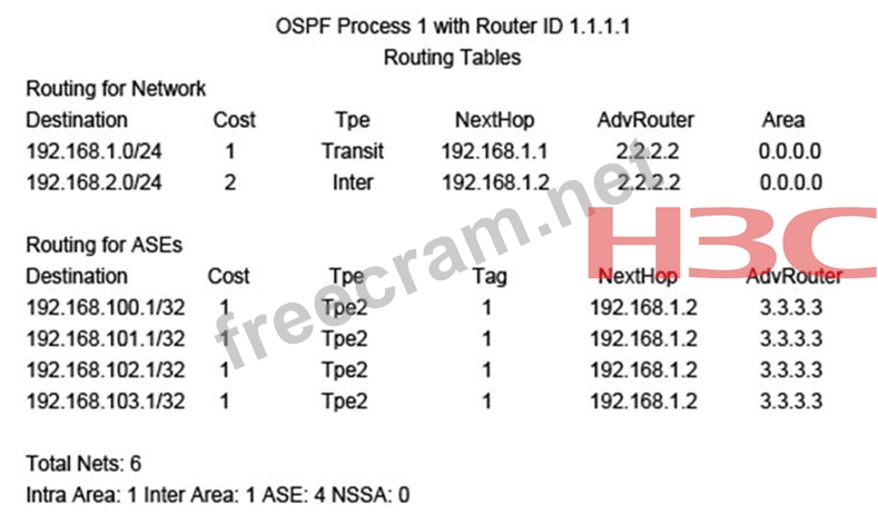 Question 4: The routing table on a H3C router is displayed as follows: H...