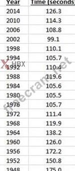 A ski coach is interested in estimating the 68% confidence interval around the mean time (in seconds) of all the gold medal winners in Olympic downhill skiing. The coach collects the data, presented below, for all of the winners from 1948 to 2014. The mean of the sample is 122.5 seconds, with a standard deviation of 23 seconds. Which Excel function below is the BEST option for determining the 68% confidence interval?