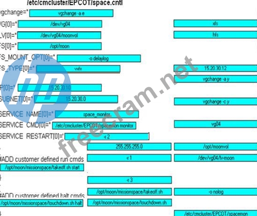 The package will be called 'missionspace' and will have an IP address of 15.20.30.10 on the 15.20.30.0 network. A failure of the 15.20.30.0 network will cause the package to fail over to the adoptive node. The package will run on FIONA as the primary node and fail back from SHREK manually. A service process called space_monitor will be used to monitor the health of the package. The monitor is started by running the script /etc/cmcluster/EPCOT/spacemon and passing it the argument "monitor".